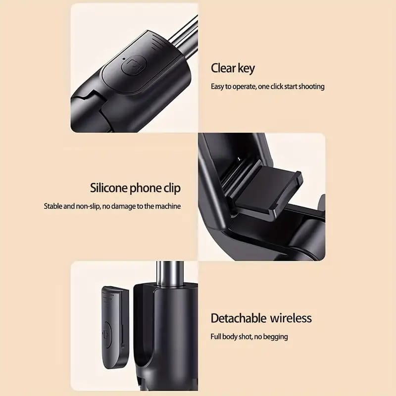 1. 4 in 1 Design: Tripod, selfie stick, remote control, and extendable pole in one.