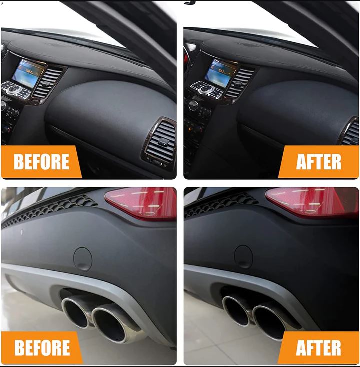 WIDE RANGE OF APPLICATIONS: The car plastic restorer is perfect for RVs, Plastic Parts Refurbish Agent For Car but also for any leather goods like dashboards, sofas, door handles, and more.