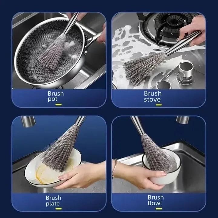 (Pack of 2) Multifunctional Long Handle Stainless Steel Pot Cleaning Brush Tool for Kitchen Use