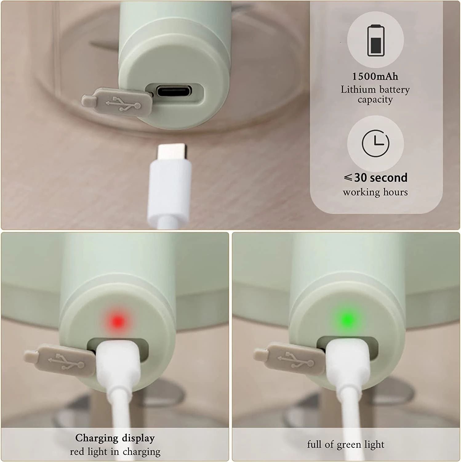 [USB Rechargeable] Our food processor's built-in 1500mAh high-capacity lithium battery, with a Type-C charging interface has a long battery life, and there is no need to replace the battery frequently. Wireless design for easy portability.