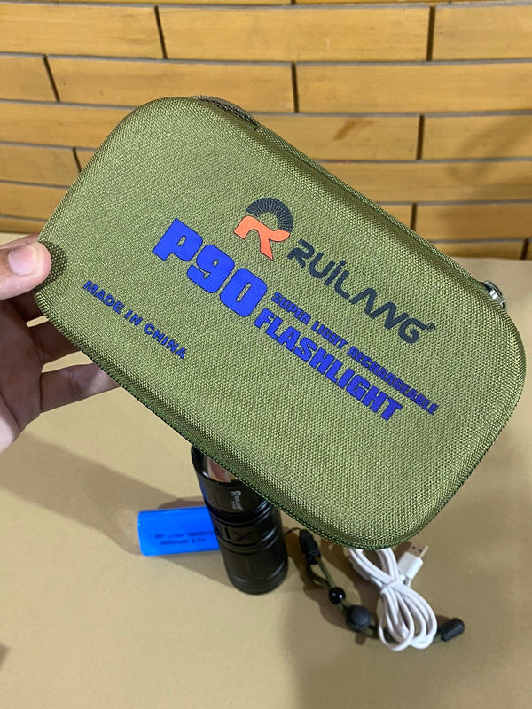 Buy Ruilang Flashlight P90 1KM Range Online Best Price in Pakistan, Buy Ruilang flashlight P90 is an excellent choice for outdoor enthusiasts, hiking, hunting, and camping. Ruilang flashlight P90 having long lasting battery performance, Ruilang flashlight P90 impressive range of up to 1km makes it easy to see what is ahead, even in the darkest conditions. Whether you're camping in the woods or enjoying a night hike, this P90 flashlight provides bright and reliable lighting that you can count on. With its durable construction and high-quality materials, the Ruilang P90 flashlight is built to last and withstand even the toughest outdoor conditions.